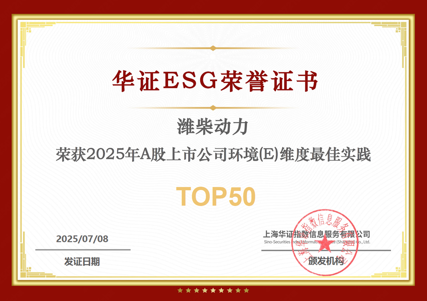 2025-07潍柴动力入选“2025年A股上市公司环境(E)维度最佳实践TOP50”