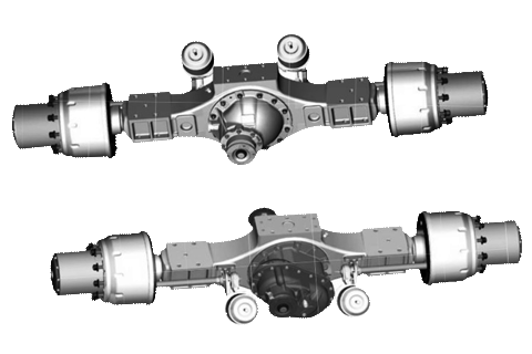 产品介绍 铸造桥壳 参数及尺寸 轴荷 18T 制动器 410*220 悬架 板簧 驱动形式 轮边减速 总宽A 2802 轮距B 2248 板簧中心距C 1200 被动轮直径 425 速比 9.866/10.765/11.84/12.169/13.278/14.604