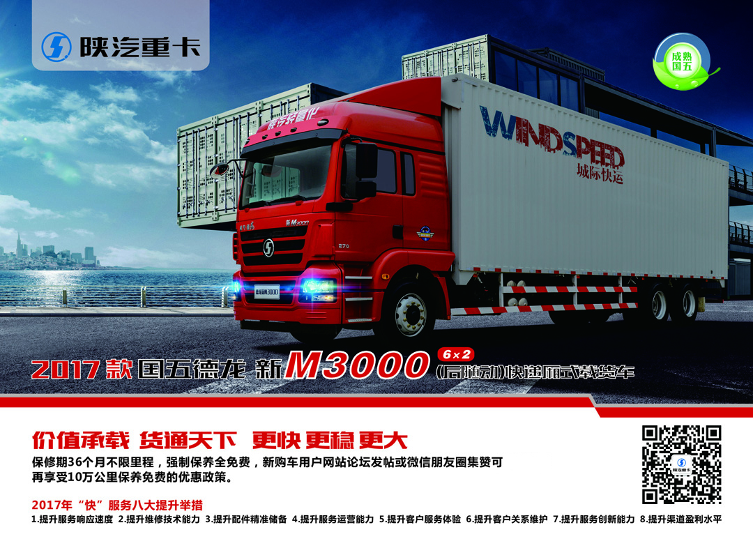 陕汽重卡新M3000(后随动)快递厢式载货车6x2