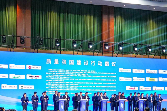 11月11日,由国家市场监督管理总局主办,以“质量强企•共创未来”为主题的全国质量强企经验交流现场推进会在北京举行。潍柴作为国家市场监督管理总局首批评选的34家“质量强国建设领军企业”代表,现场签署质量强国建设行动倡议书。